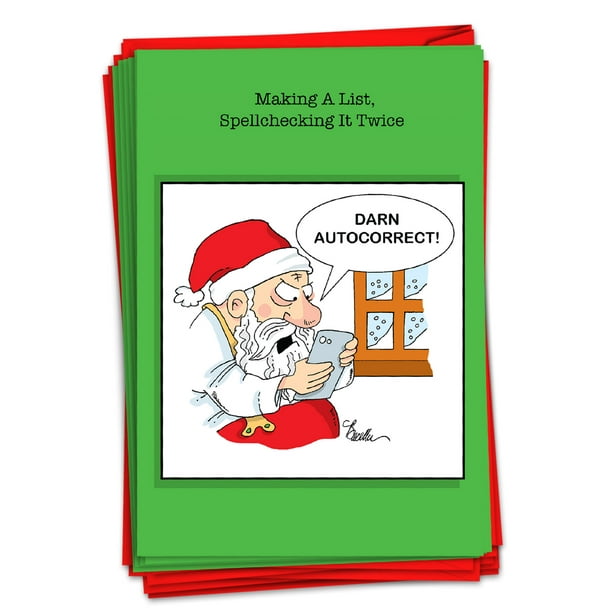 12 Boxed Merry Christmas Cards Funny 1 Design 12 Cards Santa Auto Correct C3399xsg B12x1 Walmart Com