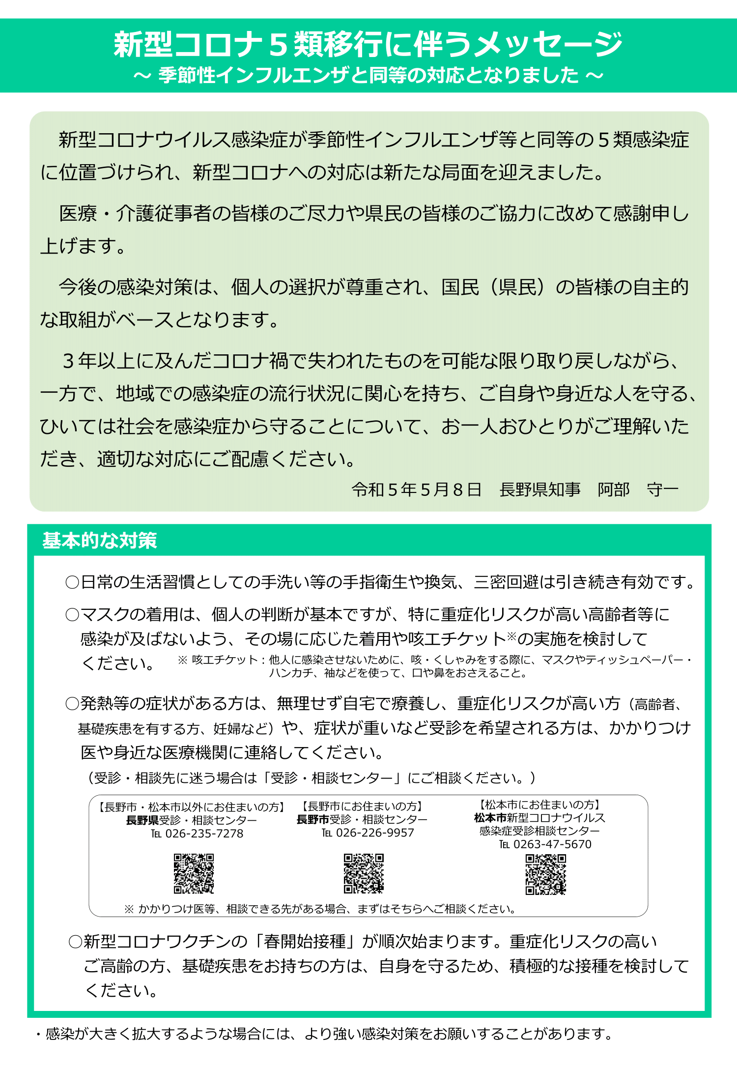 令和5年5月8日 新型コロナウイルス感染症対応の変更点 福島県ホームページ